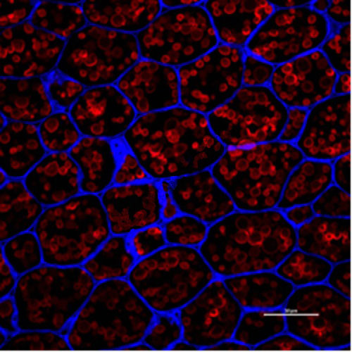尼罗红荧光染色法可以准确地将细胞内脂类物质与其它贮藏物区分开,因此经常被用于检测动物以及微生物细胞内的油脂情况。也可以检测植物种子内的油脂情况。