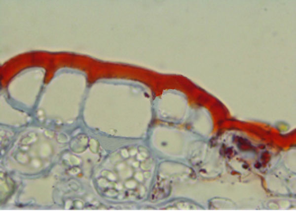 脱蜡至水—蜡质叶片油红O染色—脱水封片—显微镜镜检